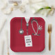 Kreative Pflege Schule Abitur Party Teller Design mit roten Krankenhaus-Skrupel. Bearbeiten Sie Text, um den Namen der Krankenschwester hinzuzufügen.