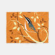 Stilisierte Vogelkunst eines Rot-Brust-Nuthatchs auf einem wirbelartigen Muster-Zweig mit orangefarbenem Hintergrund