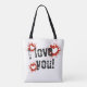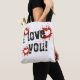 Diese langlebige Tasche ist mit meinem Design "Red Paint Spritzer Hearts, I Liebe You" versehen. Vorder und Rückseite haben drei rote, gestrichelte Herzen mit den Worten 'I Liebe you!' in einem schwarzen Kompliment Typ Schriftart.