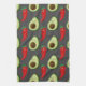 Cartoon Zeichnungen von rotem Chili Pfeffer und Avocado. Originelles Musterdesign mit dunkelgrauem Hintergrund. Küchenhandtücher nach Maß. Geschenkidee für würzige und gesunde Nahrungsliebhaber.