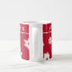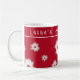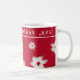 Eine personalisierte Weihnachtszeit-Tasse mit weißen Poinsettien und halleberischem Hintergrund. Es macht Spaß und elegant und macht ein praktisches Geschenk.