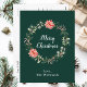 Diese lustige und festliche Aquarellweih-Weihnachtskarte kann mit einem Namen oder Titel personalisiert werden. Es ist mit einem Weihnachtskranz in Aquarellen mit roten Poinsettien und heilig auf einem dunkelgrünen Hintergrund ausgestattet. Der Text kombiniert handgeschriebene Skripte mit modernen Serif-Schriftart für ein elegantes und raffiniertes Aussehen.