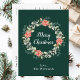 Diese lustige und festliche Aquarellweih-Weihnachtskarte kann mit einem Namen oder Titel personalisiert werden. Es ist mit einem Weihnachtskranz in Aquarellen mit roten Poinsettien und heilig auf einem dunkelgrünen Hintergrund ausgestattet. Der Text kombiniert handgeschriebene Skripte mit modernen Serif-Schriftart für ein elegantes und raffiniertes Aussehen.