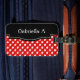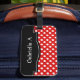 Stilvoll roter Polka Dot schwarzer Rahmen Gepäckanhänger mit weißen Polka-Punkten über rotem Muster, einem schwarzen Rahmen über der Seite, personalisiert mit Ihrem Namen oder eigenem Text in Weiß über den schwarzen Rahmen. Dieses Design ist perfekt für jeden, der Polka-Punkte und rot-schwarz-gestalten Lieben, und will einen neuen Gepäckanhänger für seine Reisen.