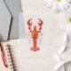 Picturesque, drawn with spots of red paint in polygonal style boiled, delicious lobster on white background.