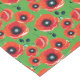 Rote Pflaumen auf apfelgrünem Hintergrund, blaue Streifen