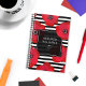 Blumenplaner in einem kräftigen, auffälligen Design mit leuchtend roten Pappeln an schicken schwarz-weißen Streifen. Fügen Sie Ihren Namen und das Jahr dem schwarzen Etikett hinzu, das von roten Blume umgeben ist.