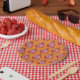 Pumpkin Art Papier Teller mit coolen Kürbiskunst zeichnend, maßgeschneiderte Hintergrund.