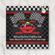 Red Racing Car Checkered Design Fevor Card mit Text, der in Anzug geändert werden kann, oder gelöscht und links für eine handgeschriebene Nachricht leer.