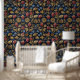 Red Raspberry & Blue Blueberry Golden Blätter Dark Tapete