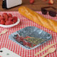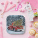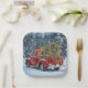 Red Retro Truck mit Weihnachtsbaum in Schneeflocke Pappteller