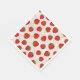 Papierservietten in einem verstreuten Muster von roten reifen Erdbeeren auf einem Punkt-Hintergrund aus rotem und weißem Button