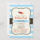 Red Rocket Space Ship; Light Blue Stripes Einladung