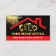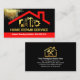 Die Decke ist mit einem roten Dach und einem vergoldeten Spritzer versehen. Unter dem Dach befindet sich ein goldenes handyman-Werkzeugmotiv. Danach folgen der Firmenname "ZUHAUSE REPAIR SERVICE" in Gold und die Kontaktdaten. Hinter einem schwarzen Cover befindet sich oben ein handyman-Logo für die Zuhause. Danach erhalten Sie Ihren Prestigenamen, die Kontaktdaten und einen Slogan, um Ihre Dienste bekannt zu machen. Eine Karte für Gebäude- und Handythemen. #construction #trading #remodeling #buildingtragning #painting #painting #painter #homerepair #Gebäude #homebuilder #homeconstruction #handyman #dhoofing