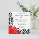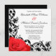 Belle faire-part de mariage gothique à thème rose. Doté d'une rose rouge classique avec d'élégants tourbillons fleuris sur un arrière - plan noir. Flore par © Mujka Design