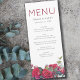 Red Rose Wedding Menu with Simple modern typography and romantic floral design. The template is set up for you to personalize with your set menu or meal options. Beautiful rich botanical theme with watercolor border of red roses, eucalyptus leaves and greenery. If you would like this design for matching products, please message me.