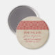 Rustikales Spitzen Sichern Sie das Date Magnet mit einem Vintag strukturierten Papierhintergrund und einem hübschen, dunkelroten Spitzenmuster. Einfach anpassen, einfach Ihre Hochzeitsdetails hinzufügen. Klicken Sie auf "Anpassen", um weitere Personalisierungsoptionen zu erhalten.