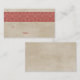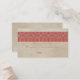 Rustikale Hochzeitsszeitszene mit Vintager Textur und einem hübschen, dunkelroten Spitzen-Rahmen. Die Platzkarte ist einfach und elegant. Auf diesem Produkt wird Platz zum Schreiben in den Namen und Tischnummern, wo jeder Ihrer Gäste sitzt. Klicken Sie auf den Button "Anpassen", um weitere Personalisierungsoptionen zu finden.