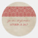 Einfache und elegante Rustikale Spitzen-Hochzeitskleber mit Vintagem Texturlook im Hintergrund und einem süßen und tönigen Spitzen-Rahmen in dunkelrot. Einfach anpassen, einfach Ihre Hochzeitsdetails hinzufügen. Klicken Sie auf "Anpassen", um weitere Personalisierungsoptionen zu erhalten.