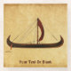 Ein Viking-Langschiff mit einem roten Segel, das von der rechten Seite aus im Profil gesehen wird und auf einem alten Papier-Hintergrundbild überlagert wird. Passen Sie Ihren eigenen Text an.
