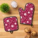 Red Sakura Pattern Ofenhandschuh & Topflappen-Set