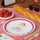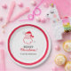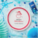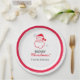 Die rote Papiertafel des Weihnachtsmanns zeigt einen lachenden roten Weihnachtsmann in einem roten, runden Rahmen und ist perfekt, wenn man die Gäste zu Weihnachten empfängt. © Morning 6