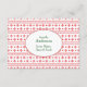 Auf der Vorderseite dieser Holiday-Flachgrusskarte befindet sich ein niedliches Bild eines kleinen, weißen bärtigen Gnoms, das eine rote Weihnachtsmannmütze trägt, die ihm über die Augen kommt. Er ist stehend hinter einer Reihe von goldfarbenen und silberfarbenen, leuchtend roten Blumenzwiebeln. Im grünen Text steht "Frohe Weihnachten!" und "Frohes Neues Jahr!" Auf der Rückseite der Karte befinden sich zusätzliche Textfelder in einem ovalen Feld, das auf einem rot-weißen nordischen Musterhintergrund platziert ist. Der gesamte Text, vorne und hinten, kann von Ihnen leicht angepasst werden.