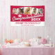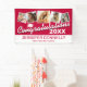 Personalisierte Graduate School Farben Party Banner mit einem roten Hintergrund, der in jeder Farbe geändert werden kann, 5 Fotos der Schüler, ein Graduierungspapier, und eine Gratulationsvorlage, die leicht zu personalisieren ist.