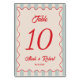 Red Script Blue Line Retro Wedding Table Number Tischnummer