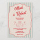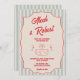 Red Script Blue Stripes QR Code Retro Wedding Einladung