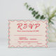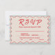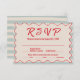 Red Script Blue Stripes QR Code Retro Wedding RSVP Karte
