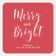 Red Scripted Merry and Bright Quadratischer Aufkleber