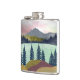 Diese wunderschöne abstrakte Landschaft zeigt eine Bergszene mit einem See und einem mehrfarbigen Himmel in Rot-, Zyan-, Blau-, Gelb- und Goldtönen.