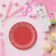 Ein Kranz aus stilisierten, sanft leuchtenden Weihnachtslichtern bildet einen Rand um den Tellerrand. Fügen Sie Text mit den Bearbeitungswerkzeugen von Zazzle hinzu, wenn Sie möchten. Andere Farben und Koordinationsgegenstände sind in meinem Shop erhältlich.