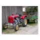 Oldtimer aus dem 50. Jahrhundert mit grünem Holzanhänger, gebaut von einer Firma in Österreich