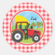 Red Tractor on Red and White Gingham Runder Aufkleber