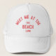 Treffen Sie mich im Beach Trucker, der der perfekte Alltagshut für Ihre Strandreise ist. Rot beängstigende Strandbriefe. Personalisieren Sie sich mit den Details Ihrer Strandreise... Jahr und Strand Ziel. Ideal für einen Strandausflug mit Familie oder Freunden oder einen Bachelorette im Beach Club oder als Memento für einen vergangen Ausflug. Matching Accessoires in der Meet Me in der Beach Yellow Cabana Stripe Collection.