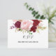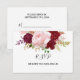 Diese tropische und romantische rote Karte ist perfekt für eine rustikale Hochzeit. Die Rose sind in Aquarell, Grün, Rosa, Bordeaux und Rosa gehalten und mit viel Grün in einem anmutigen und strahlenden Bouquet in der Blume eingerichtet