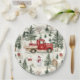 Ein niedliches, klassisches Winterdesign mit einem Vintagen roten LKW, Bäumen, Schnee und einem Schneemann!