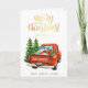 Roter LKW mit Kiefernbäumen auf weißem Hintergrund.