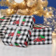 Klassischer, weißer und schwarzer Büffel Karo kariertes Musterdesign mit einem niedlichen Vintagen Truck mit Weihnachtsbaumgrafik.