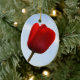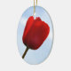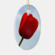 Hellrote Tulpe gegen einen klaren blauen Himmel.