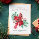 In diesem Design befindet sich ein handgemalteter Aquarell-Kardinal, der zwischen Poinsettias, Kiefern und Beeren sitzt. Auf der Rückseite der Karte ist ein Muster mit Weihnachtsblättern wie Heilige, Blume, Kiefer und mehr. Passen Sie den Text auf dieser Karte an. Sehen Sie sich die gesamte passende Auflistung an.
