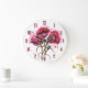 Grande Horloge Ronde Clock Red Watercolor Poppies
