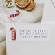 Whimsikale Rücksendeadressen-Aufkleber mit einer Londoner Telefonkasten-Illustration überragt mit einer Weihnachtsmannmütze als besondere festliche Touch neben Ihrer Adresse. Macht die ganze Saison über glückliche Weihnachtsmailings! Originelle Kunst und Design von Annie Montgomery Design.