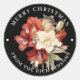Red & White Amaryllis über Schwarz Frohe Weihnacht Runder Aufkleber