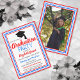 Versenden Sie diese Einladung zur Red, White und Blue Foto Graduation Party an Freunde und Verwandte, um Ihre Highschool oder Uni-Absolventen zu feiern. Passen Sie es mit dem Namen, der Schule, den Party-Details und dem Foto auf der Rückseite an. Dieser charmante Schulgeist lädt mit rot, weiß und blau Schulfarben und einem femininen Script-Schriftart ein.