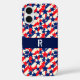 Red and white stripes with big blue stars are bold and bright on this iPhone case! Personalize with your name or initial in a wide blue band.