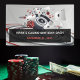 Eine 3D-Darstellung fliegender Casino-Chips, Karten, Würfel und Roulette-Rad für eine Casino-thematische Geburtstagsparty. Ideal für eine 40. Geburtstagsfeier oder einen anderen Geburtstag!