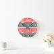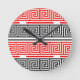 Red White Black Grikey Fret Pattern Design Runde Wanduhr